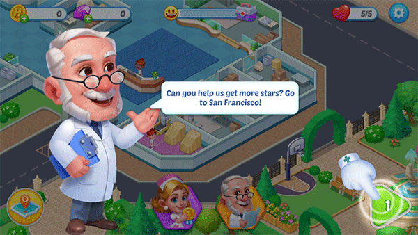 5、上方进度条可以看到获取星星的进度和医生护士的人数