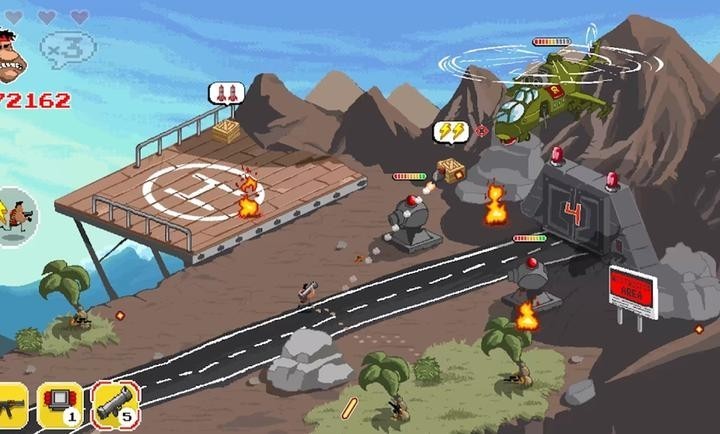 1、玩家控制约翰曼波,使用手榴弹、火箭筒等武器,战胜一波波敌人和坦克。