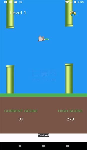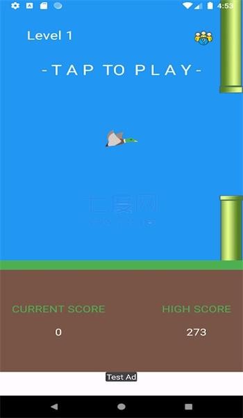 是一款有着搞笑画风的休闲游戏,在游戏中你操作着鸭子进行跳跃,游戏中鸭子跳跃是有着限制的,只能在跳跃的空中待上几秒,游戏采用关卡制,可以挑战不同场景!