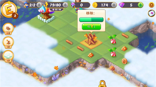 2、把木头合并,得到小木屋,再把小木屋合并,建成木头豪宅。