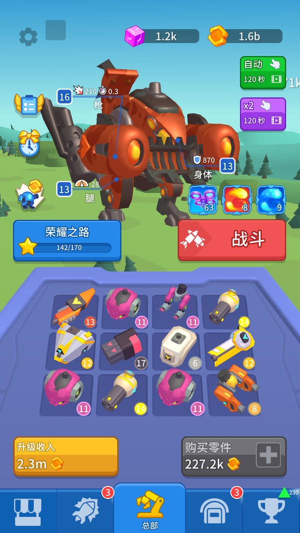 5、升级装备能够让战士的整体能力得到改变,同时你还可提升他的具体零件属性,能够发现更多的好处。