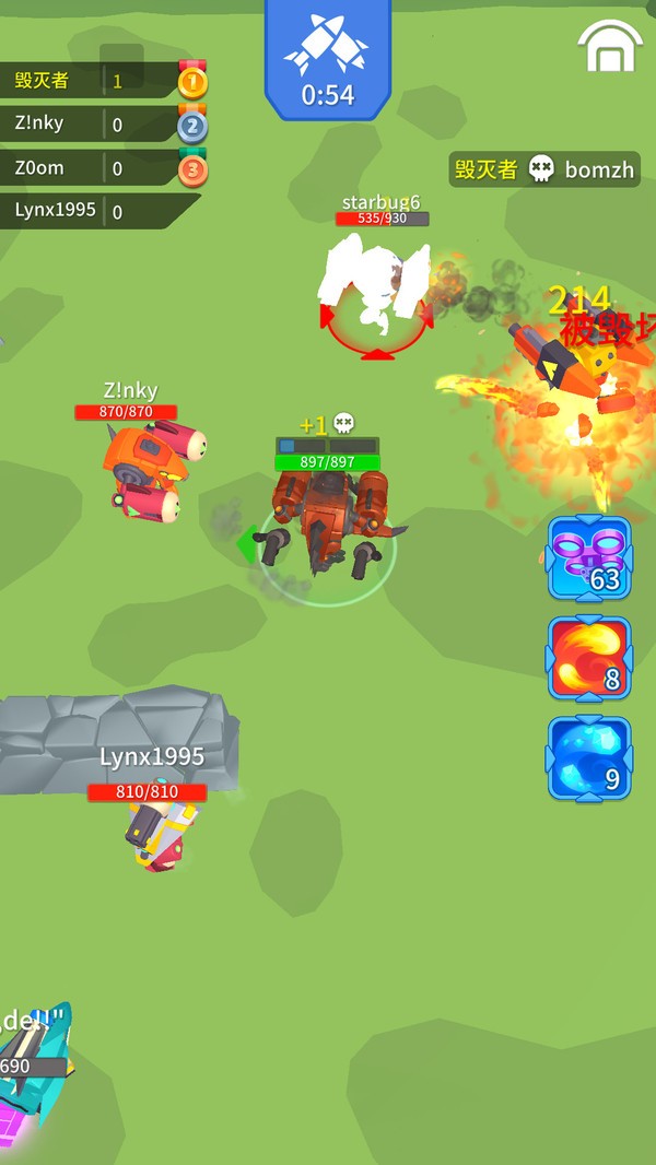 2、提供多种核心技能选择,包括护盾、冰冻控制、电磁干扰等实用功能,帮助你在关键时刻扭转局势赢得胜利。
