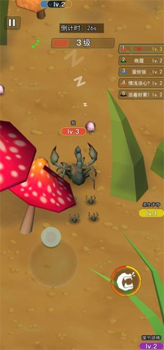2、游戏的操作还是比较简单的,滑动屏幕控制昆虫,靠近对手开始点击攻击;
