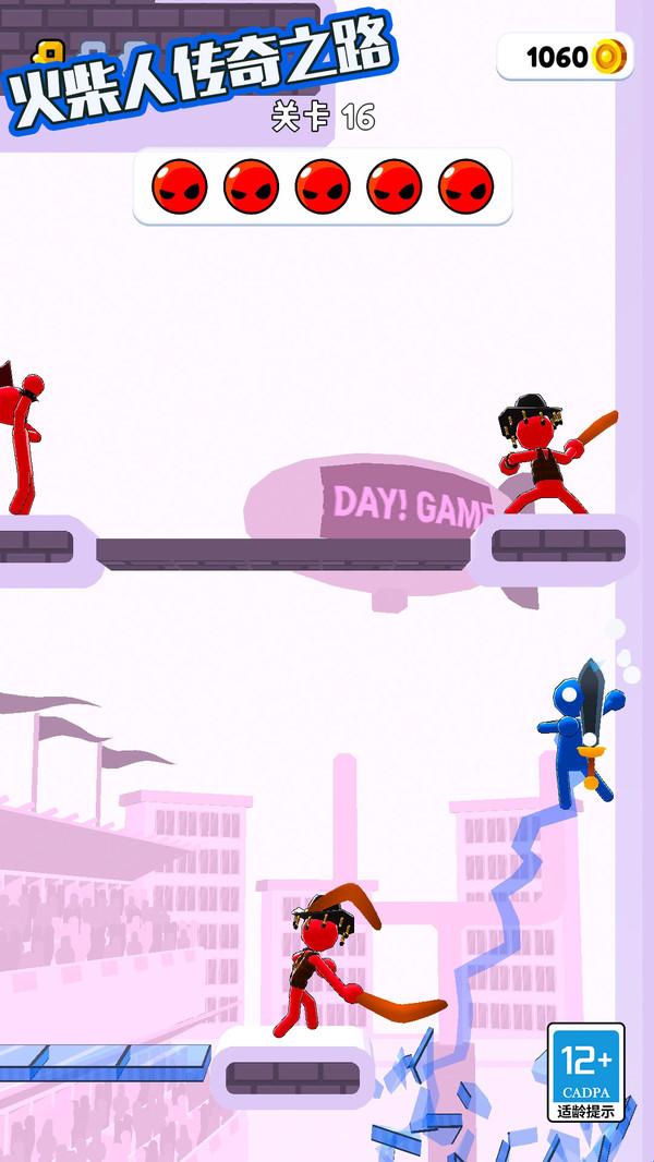 3、丰富的道具:收集各种丰富的道具不仅可以帮助玩家顺利过关,还能提升火柴人的能力,让冒险更加刺激。