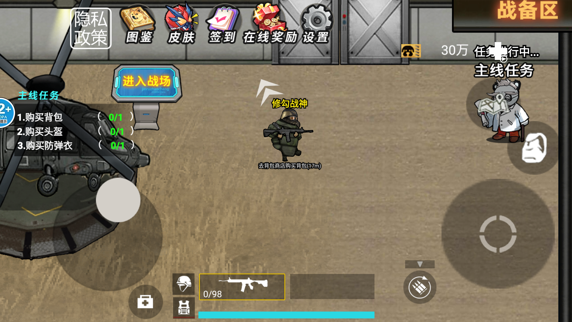1、开局优先在正规供应商处购买必备基础装备,保证前期作战能力。