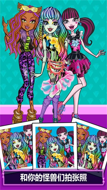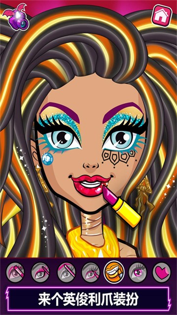 4、使用你所见过的最棒的化妆工具,给你那些美丽的怪物们梦寐以求的装扮!添加闪电贴纸和蜘蛛脸珠宝,获得额外恐怖的装饰。