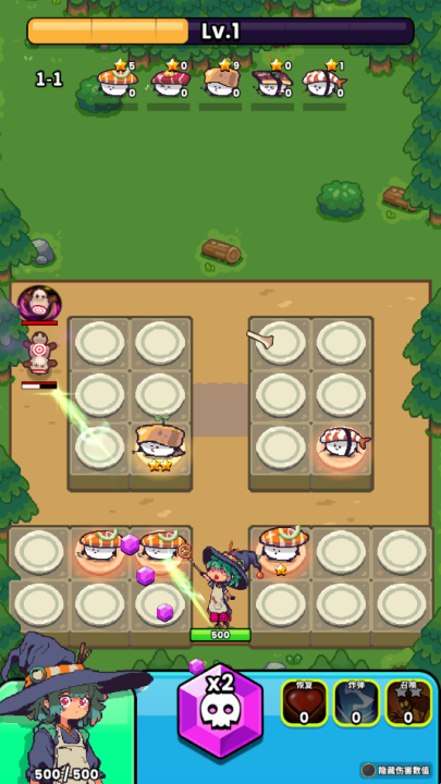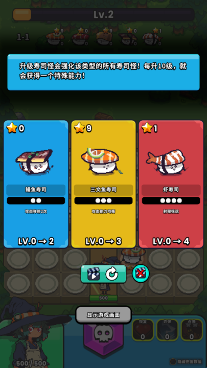 2、召唤勇敢的寿司怪,并合成它们,在地下城中生存下去吧!