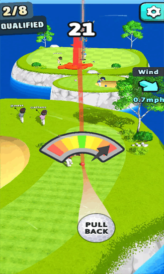 高尔夫大战游戏中为大家真实模拟了高尔夫场地,玩家们可以在这里体验打高尔夫的乐趣!该游戏对新手也是非常友好的,内置详细的教程可以学习,以及还有各种竞技赛可以参与,您可以在这里展示球技,和其它球友们一决高下!