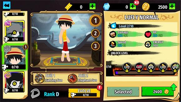 6、在主界面点击heroes可以解锁新的英雄和对已有的角色进行升级。