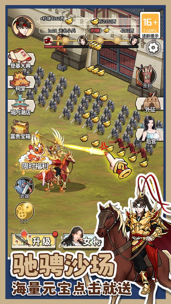 4、直接获得坐骑火麒麟,然后装备坐骑,瞬间战力飙升,击败曹操