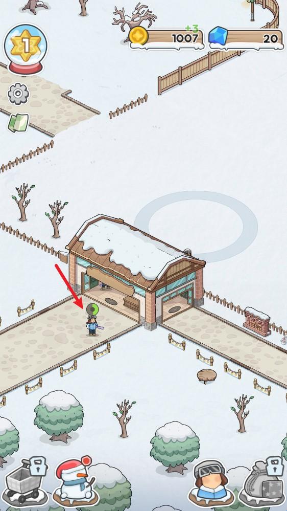 1、进入游戏后,就可以看到初始的滑雪场,门口会有源源不断的客人出现。