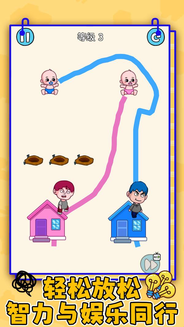 1、需要玩家们进行思考,切断哪一根绳子才能顺利的解救这个孩子;
