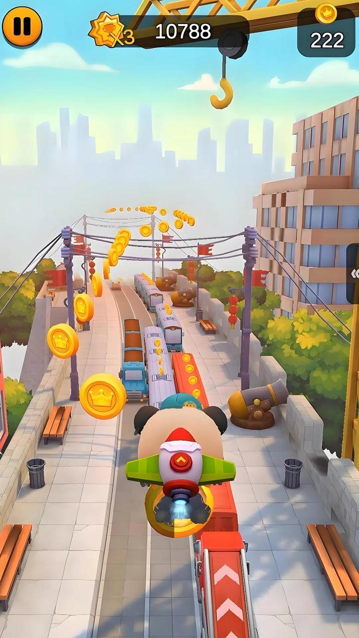 道具:奔跑中可随机捡到加速鞋、磁铁、护盾、滑板等道具。加速鞋能短时间加速,磁铁可自动吸取周围金币,护盾能抵御一次伤害,滑板具有无敌撞开障碍、跳高跨越鸿沟等功能。