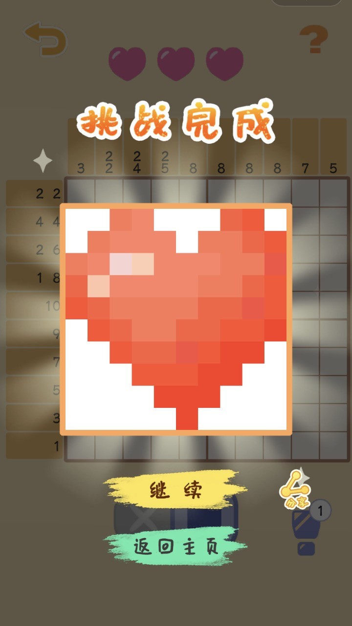 3、游戏的方格后面隐藏着一个图案,玩家必须只有填写正确才能够让图案显示出来,只有这样才能通关。
