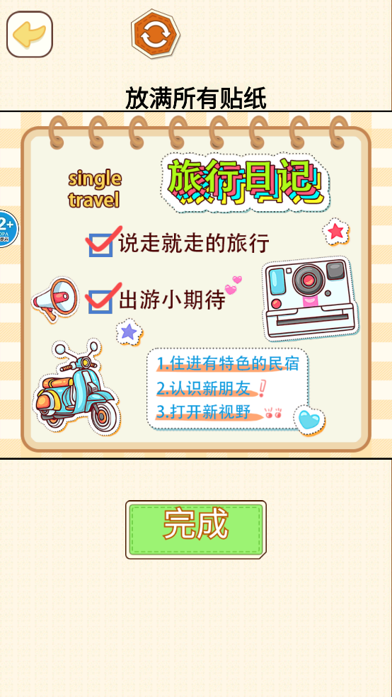 2、游戏中的贴纸配色精美、搭配合理,让手账本更具有视觉冲击力;