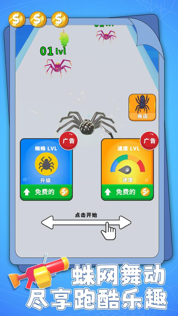3、随着等级的提升,蜘蛛的外观和战斗力也会逐渐增强。