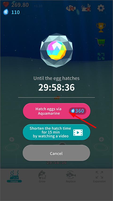 5、鱼苗加速长大需要使用钻石,点击使用鱼苗即可长大成一条鱼;