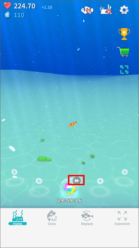 4、如果玩家想要鱼苗快速长大可点击旁边的加速按钮;