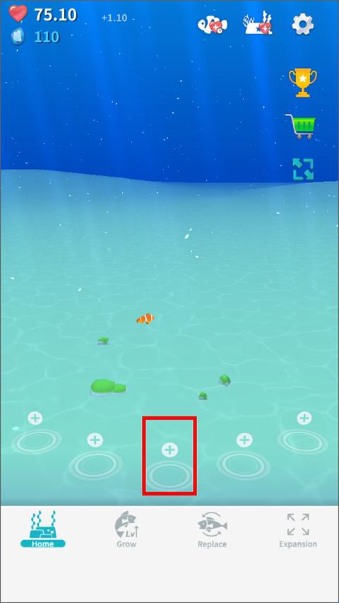 1、玩家打开口袋水族馆游戏,点击进入水族馆,玩家根据提示点击“+”;