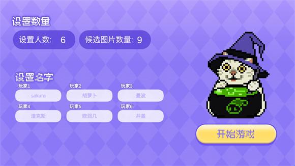 1、进入游戏后玩家可以左上方设置参加的人数和可以选择的图片数量,设置好后点击开始游戏。