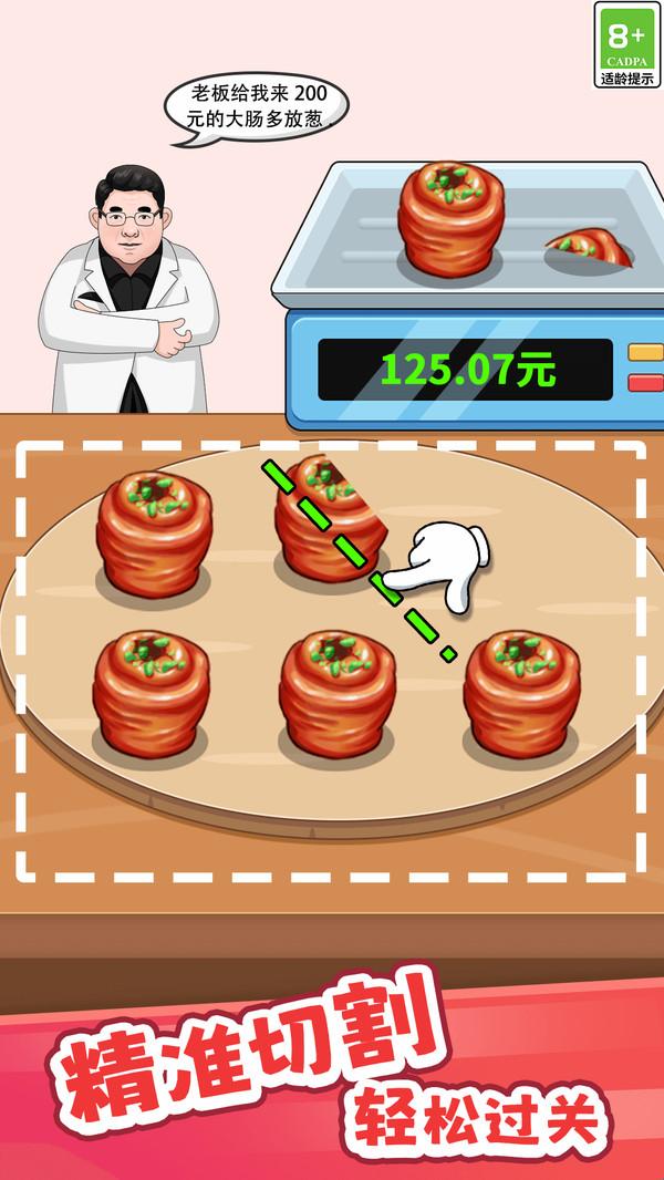 完美画线切切切的玩法非常简单,玩家们只需要按照游戏的相关步骤来进行设计,将出现在你面前的各种食物进行切割就可以了,不同的顾客要求的服务不同,玩家们也可以利用游戏为你提供的菜刀,计重秤等工具来助力你进行闯关,游戏中的关卡模式体验十分丰富,在这里还可以见到很多不同种类的食物,玩起来轻松又解压。