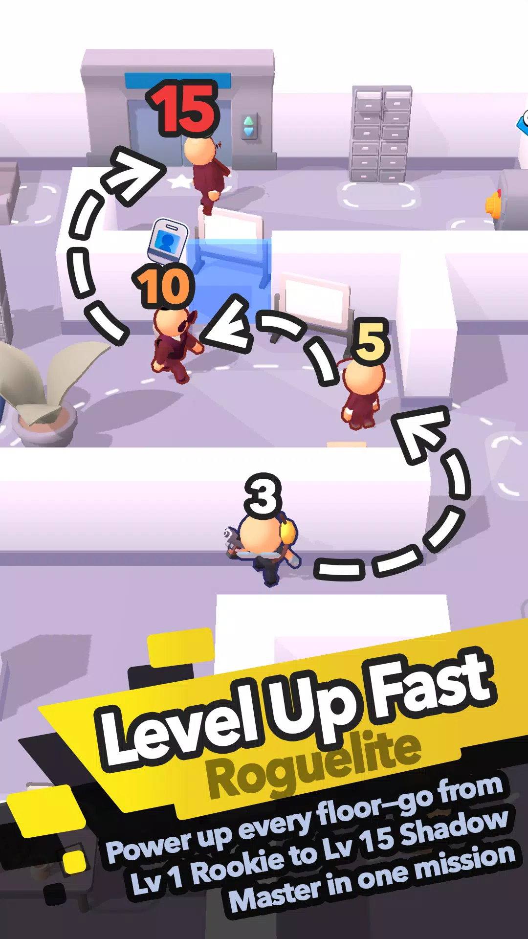 Roguelite进程——每层都升级:一次任务即可从 1级新手跃升至 15级暗影大师。技能可随时重塑你的体型。
