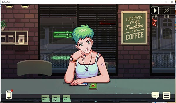 4、氛围营造系统:像素画面、冷色调与背景音乐共同营造出沉浸式的咖啡厅氛围,增强玩家的代入感。