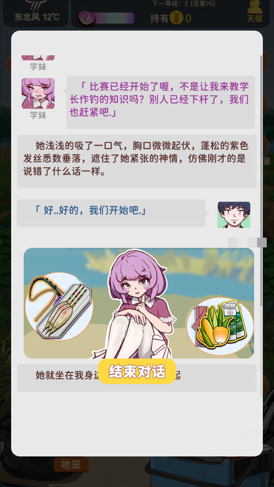 5、比赛开始之后会出现随机事件、根据你想要的发展进行对话或者选择即可。