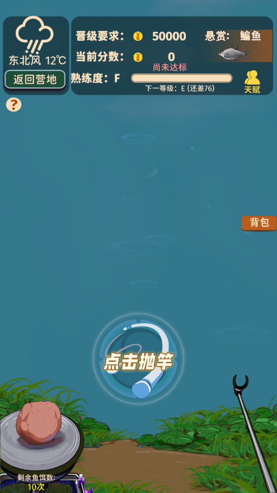 9、开始钓鱼、上面会显示你需要达到的目标。