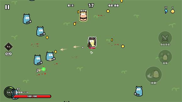 5、全部选好后就会开始,滑动屏幕可以控制角色移动,点击右边攻击按键可以自动攻击。