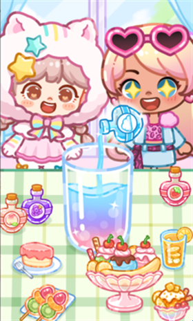 步骤1:果汁混合自由混合五颜六色的果汁:多汁的西瓜汁、酸甜的橙汁,甚至是梦幻的蓝莓汁!