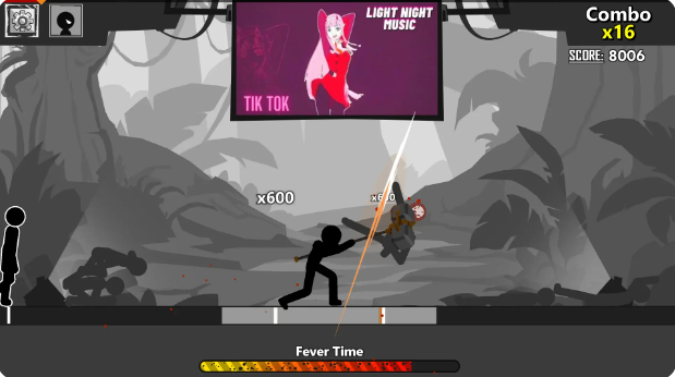动感火柴人是一款以音乐节奏为主题的格斗小游戏,在这里玩家们通过控制火柴人进攻方向完成对战!在对战过程中一定要小心对手出招习惯,巧妙的借助武器、施展组合连环击完成绝杀即可!整个游戏过程是非常精彩的,好玩有趣,大家千万不要错过啦!