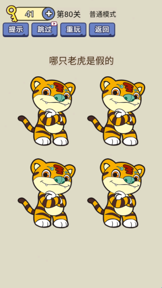 2、接下来我们可以用手指擦掉它头上的王字,就知道那只是假的老虎啦!