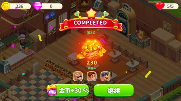 6、招待完所有客人后就可以过关获得奖励了。