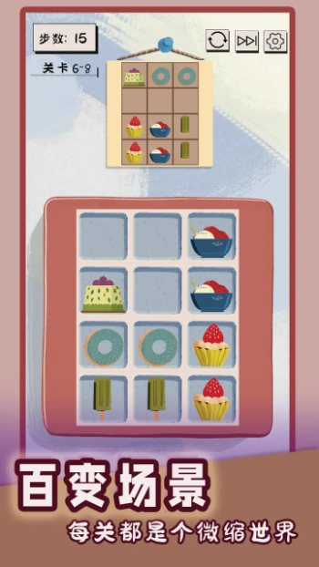 1、每一关中,我们需要通过移动下方的物品来进行闯关,达成上方对应的位置即可。