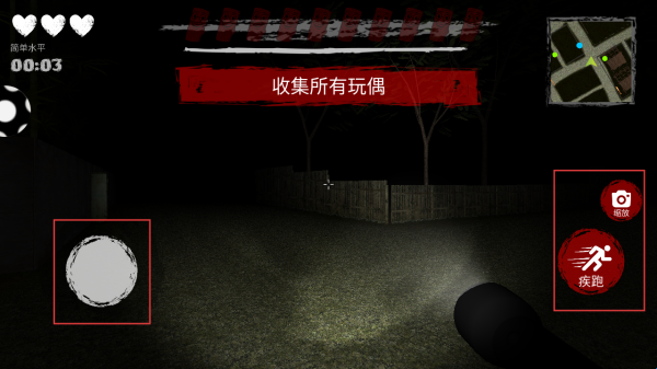 3、明确任务目标,通过左下角的虚拟摇杆控制角色移动,利用右侧的【缩放】和【疾跑】按钮辅助操作。