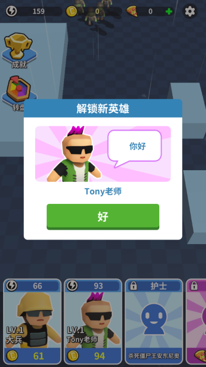 1、采用非常独特的团战模式,挑战僵尸,这款游戏必须均养四个英雄。