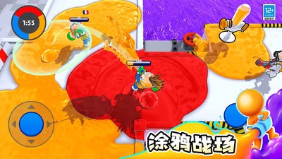1、在涂鸦的战场中发射油漆,展开趣味的颜色大乱斗,十分解压