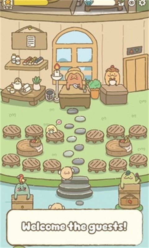 1、经营你自己的青蛙酒店,建设可爱的房间、轻松的装饰和令人身心放松的娱乐设施,招待可爱的动物客人。