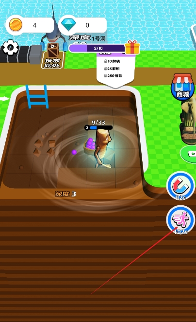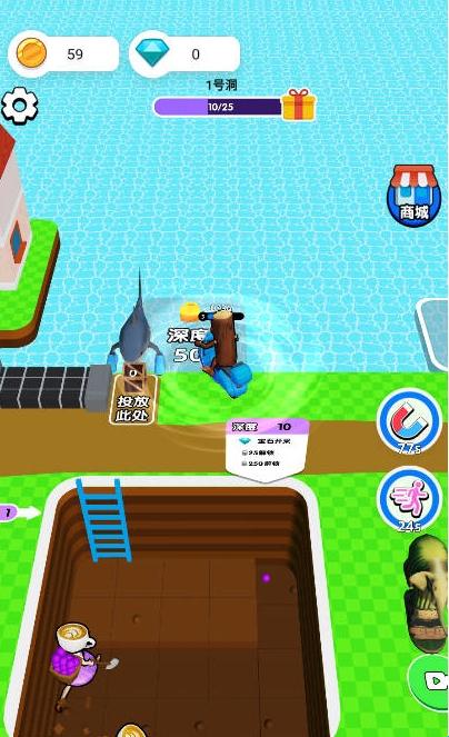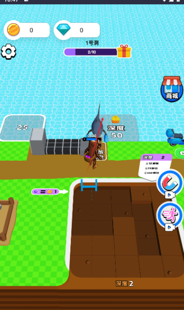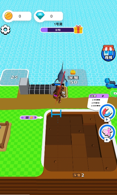 1、游戏操作简洁,卡通风格画面轻松可爱,采矿过程节奏舒缓,非常适合闲暇时光放松身心。
