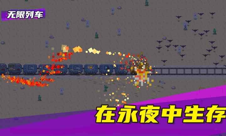 无限列车是一款射击生存游戏,怪物从各个方向出现,需要防止怪物碰撞车头,车头有血量限制,血量归0游戏结束。地图还会随机出现金矿、房屋等资源,打掉后可以获得资源收益。随着行驶距离增加,也会有经典肉鸽三选一,对金币资源有统筹,也需要考虑炮台之间的搭配策略。炮台种类很多,肉鸽选项不光随机品类,等级上也有随机性,还有超级技能可选。白昼渐短,黑夜将至,最终迎来永夜,更恐怖的威胁潜伏其中。每趟旅程随机生成,在绝境中为生存而战。