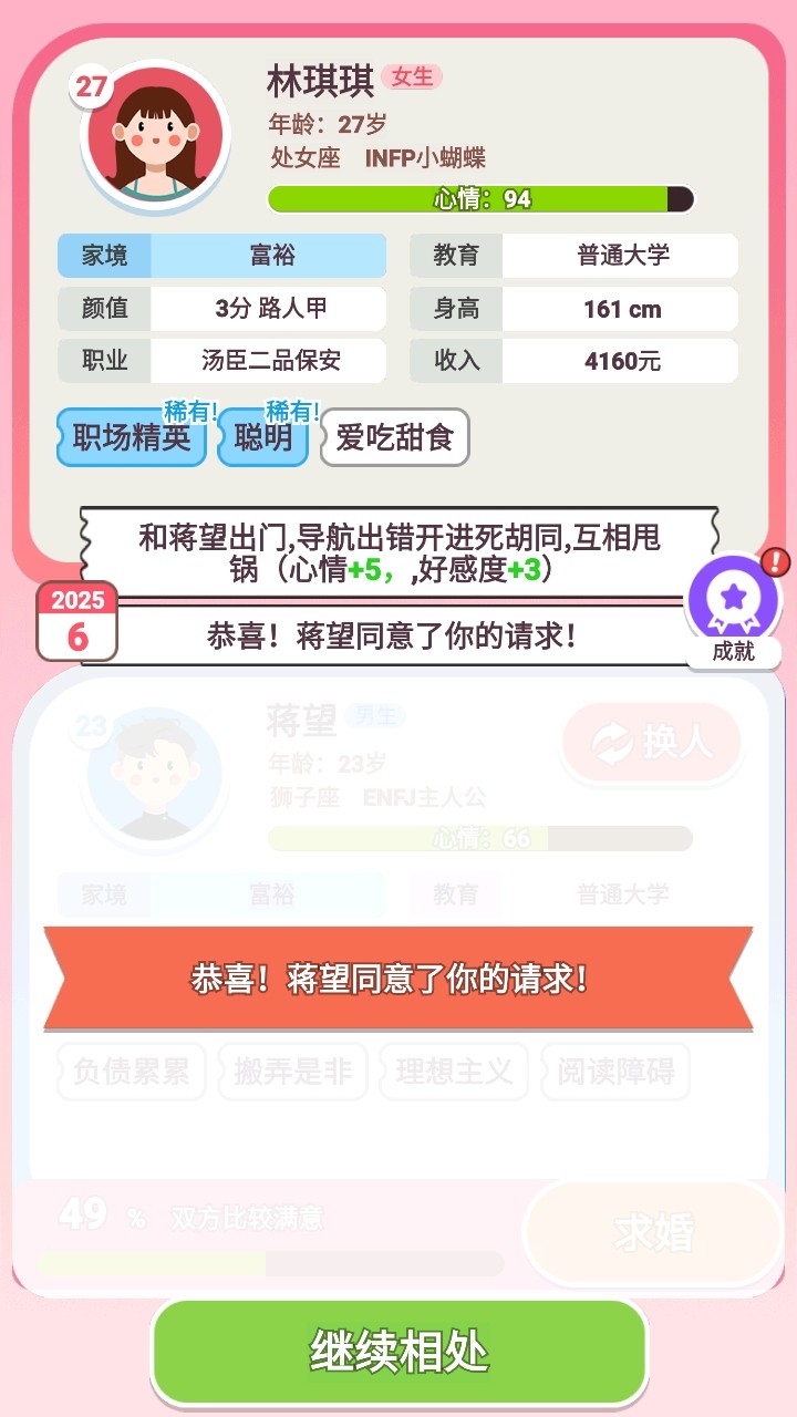 2、触发生育剧情:婚后与伴侣互动时,会随机出现“想要孩子”的对话选项,或在特定节日(如情人节、家庭日)触发相关剧情。选择同意后,系统会进入“备孕”阶段,期间需保持伴侣心情愉悦(避免争吵、压力过大),可通过赠送“育儿书籍”“营养品”等道具提升备孕成功率。