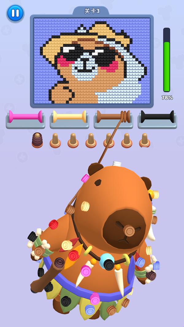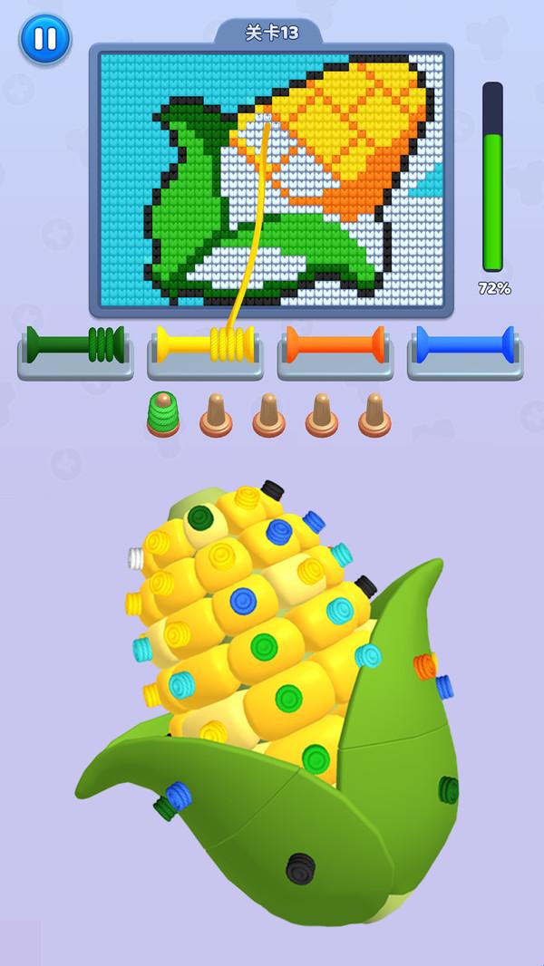 2、通过持续消除毛线球解锁更多色彩,完成像素画绘制,让玩家体验从收集到创作的完整过程。