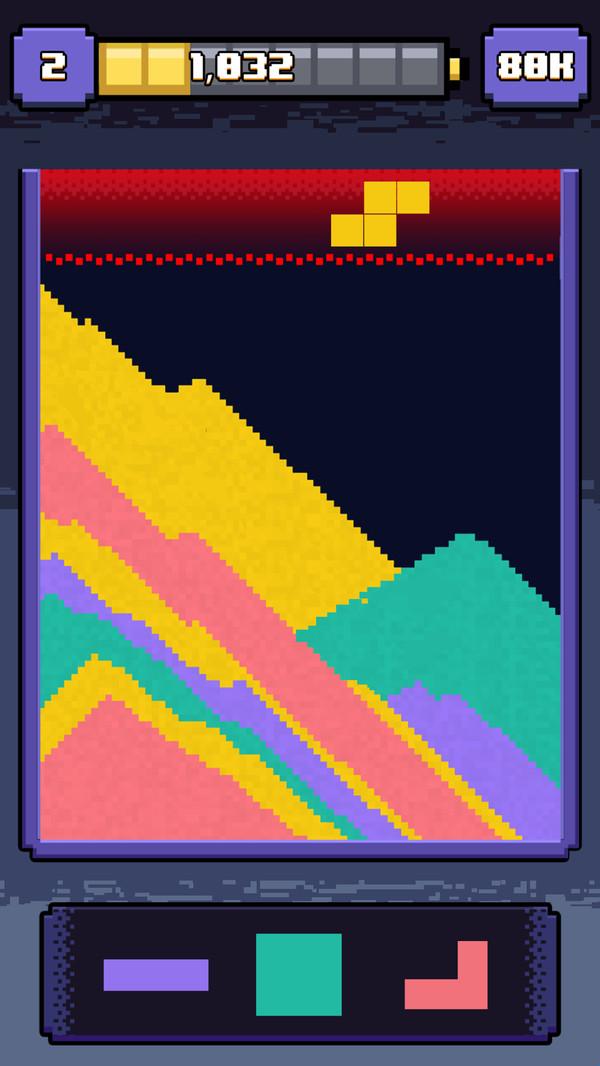 1、打破传统俄罗斯方块固定形态思维,流动沙块带来前所未有的不确定性与趣味策略。