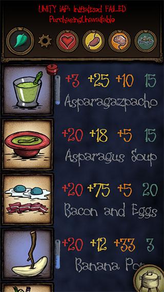 2、包含Don"tStarve游戏中的所有食材和食谱,并且可以模拟游戏中的所有烹饪食谱和食物效果。