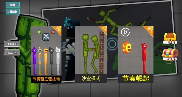 2、节奏甜瓜竞技场主打竞技对战,沙盒模式供玩家自由探索创造,节奏崛起玩法又带来别样挑战,满足不同喜好。