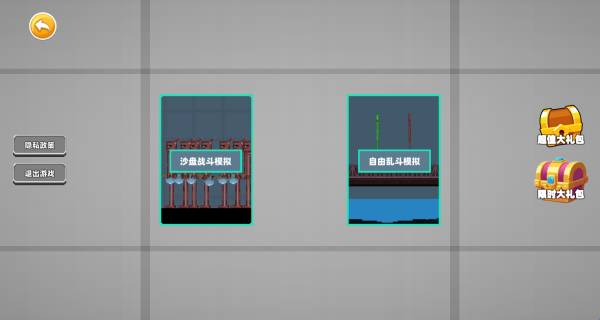 3、一共有沙盒战斗模拟和自由乱斗模拟两种玩法,分别具有不同的挑战。