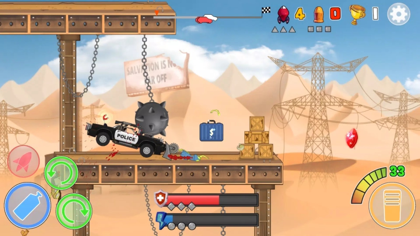 飞越障碍物,击落暴露在阳光下的僵尸,升级僵尸汽车并解锁更好的汽车。