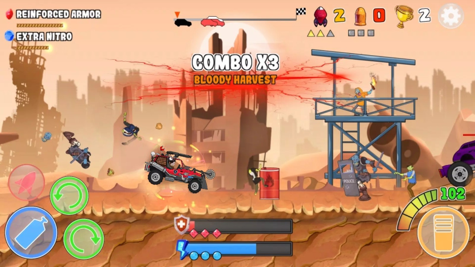 粉碎路上遇到的各种障碍,因为没有回头路,唯一的生存机会就是杀死僵尸,不死。在末日世界中,飞驰在山丘和废墟中,在活死人中求生,飞越障碍物,击落闯入阳光下的僵尸,在僵尸赛车中升级你的僵尸赛车并解锁更好的赛车。道路将变得更加艰难,山丘更加陡峭,障碍物更加阴险,太阳也即将落下。届时,成群的僵尸怪物将涌上街头,赛车比赛将变成一片尸横遍野的混乱。