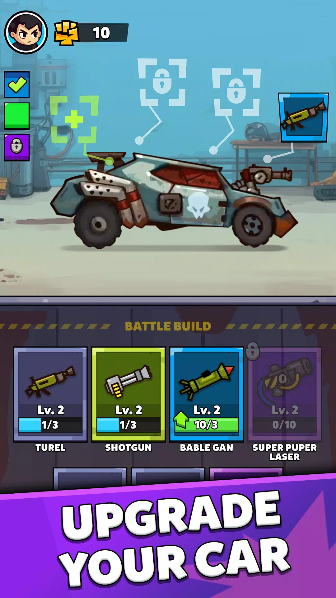 2、打造你的战争装备:定制车身、保险杠、车轮、武器等等。